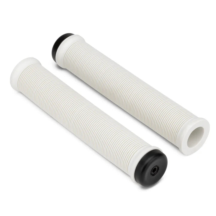 The Mission Tactile grips are a super comfortable flangeless grip, with a generous 160mm length. The spiral rib pattern feels soft while still providing tons of grip and just the right amount of support. Ultra-durable expanding wedge style barends come included and are a much-welcomed upgrade over standard plug style barends.