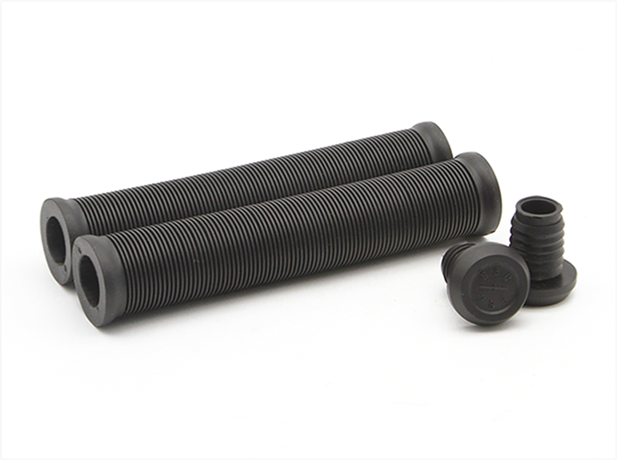 Radio’s new login grips use a classic ribbed profile with a soft yet durable rubber compound for that perfect feel out of the box. Longer than most grips at 160mm, these super dialed grips include radio push-in nylon bar ends.